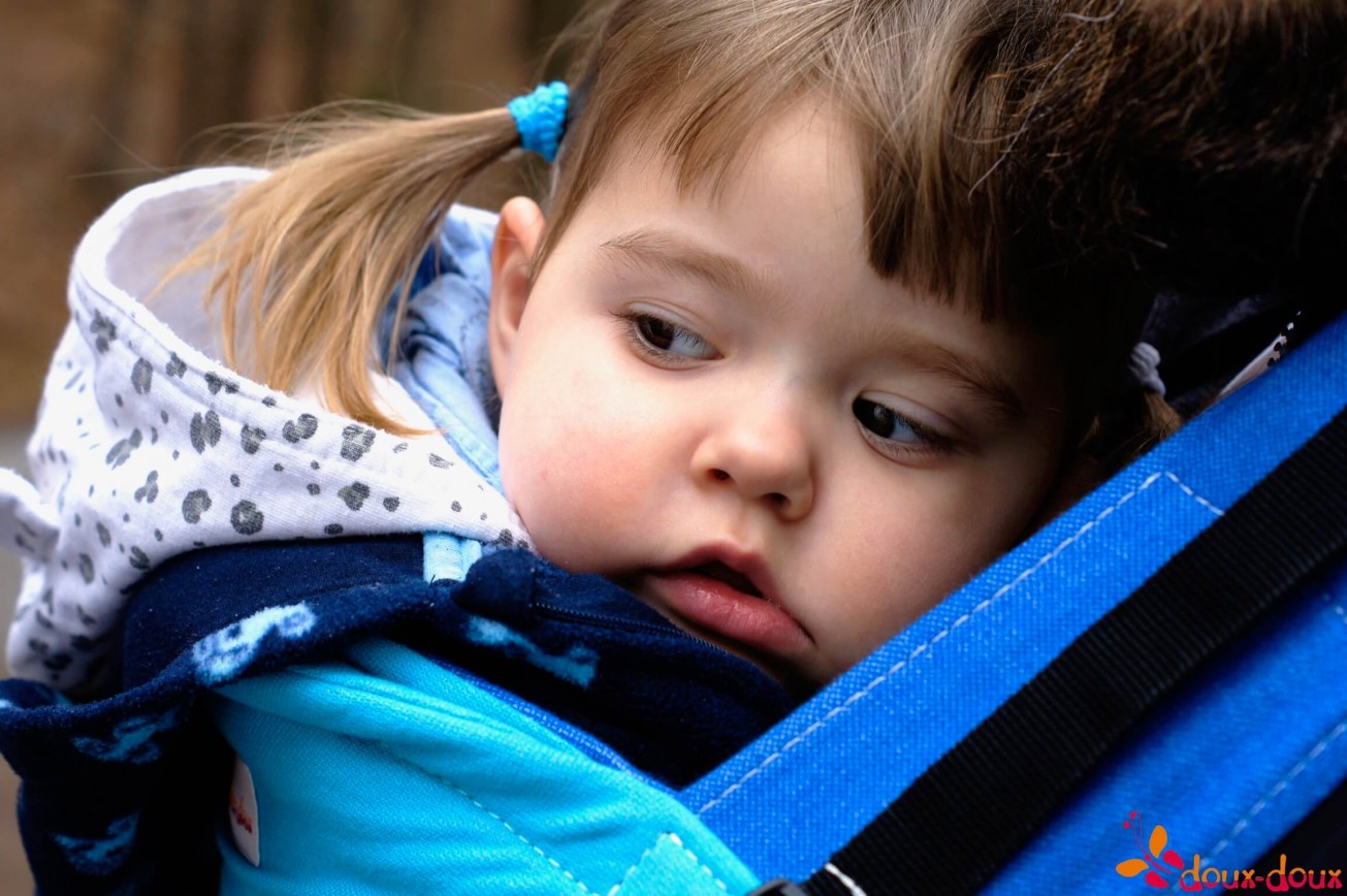 Z kolei dzieci większe potrzebują nosidła w rozmiarze toddler, z szerszym i wyższym panelem, który pozwala też lepiej rozłożyć ciężar dziecka na plecach rodzica.